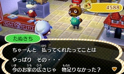 微妙に首をかしげるたぬきち。