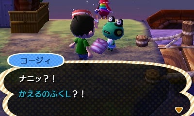 あいかわらずカエル服のコージィ。