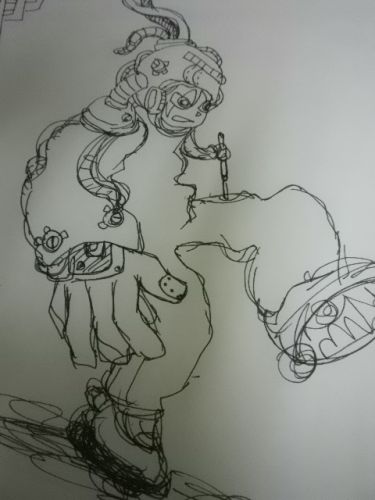 「機械少年メカボーイ」のポーズを真似して描いた。