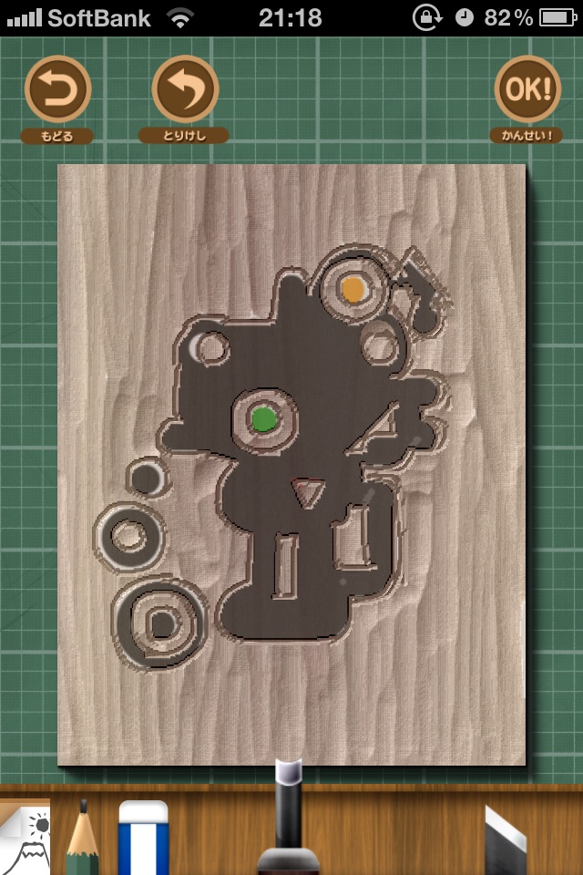 試しに、カンタンデザインで描いたロボを彫ってみる。