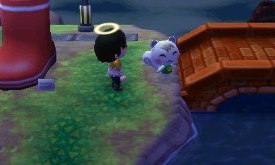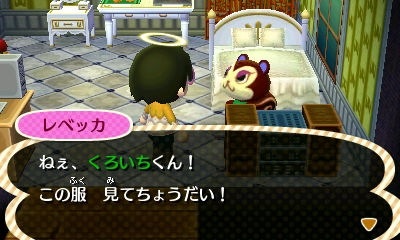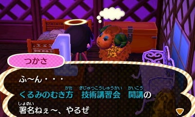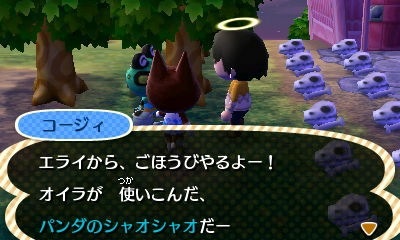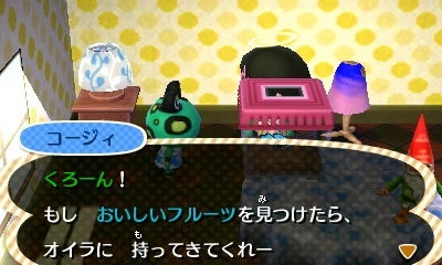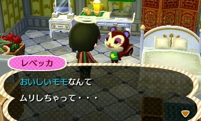 コージィにおいしいモモを渡す。
