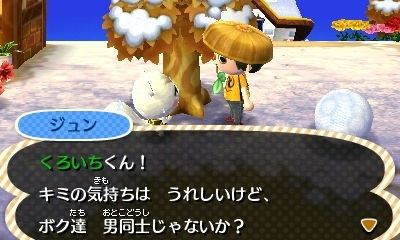 村民には、完全に変装が見破られている。